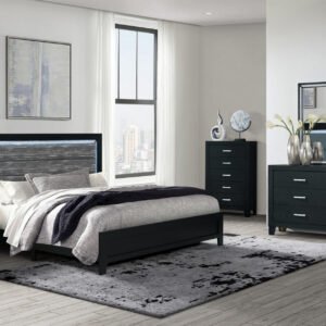 POMPEI METALLIC GREY QUEEN BED GROUP WITH LED