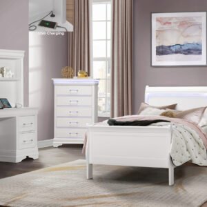 CHARLIE WHITE FULL BED GROUP WITH LED