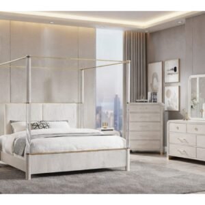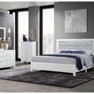 LUCCIA WHITE KING BED GROUP WITH LED