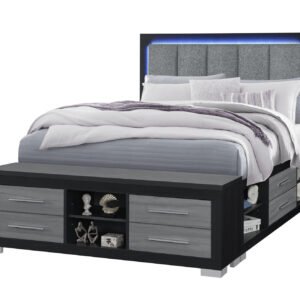 EMMA BLACK/GREY QUEEN BED WITH LED AND USB