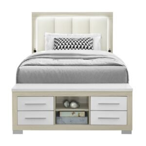 EMMA NATURAL/WHITE FULL BED WITH LED AND USB