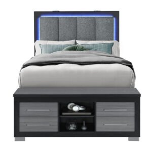 LISBON GREY/BLACK BOOKCASE QUEEN BED