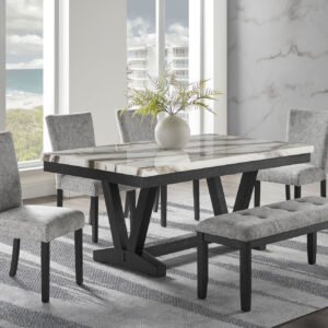 D1319 BLK/WHT DINING TABLE/ 4 D1319 LT GREY DINING CHAIR/ D1319 LT GREY BENCH