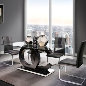 D2502 DINING TABLE AND 4 D12 BLACK DINING CHAIR