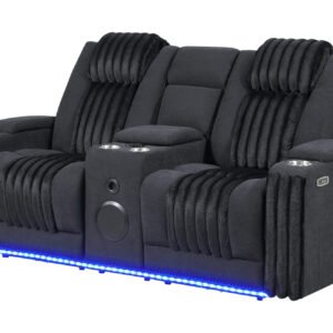 U8000 BLACK POWER RECLINING LOVESEAT W/ CONSOLE, POWER HEADREST, LED LIGHT, & BLUETOOTH SPEAKER