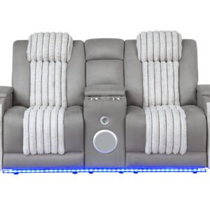 U8000 GREY POWER RECLINING LOVESEAT W/ CONSOLE, POWER HEADREST, LED LIGHT, & BLUETOOTH SPEAKER