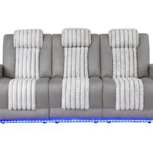 U8000 GREY POWER CONSOLE RECLINING LOVESEAT W POWER HEADREST LED & BLUETOOTH SPEAKER/ POWER RECLINING SOFA W HEADREST DDT TABLE READING LIGHT & LED