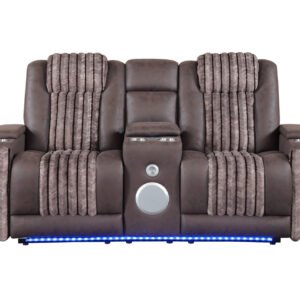 U8000 BROWN POWER RECLINING LOVESEAT W/ CONSOLE, POWER HEADREST, LED LIGHT, & BLUETOOTH SPEAKER