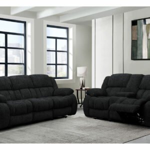 U6026 BLACK PU 72A RECLINING SOFA WITH LED
