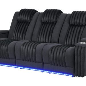 U8000 BLACK POWER RECLINING SOFA W/POWER HEADREST, DROPDOWN TABLE W/ WOOD TRIM & READING LIGHT, & LED LIGHT
