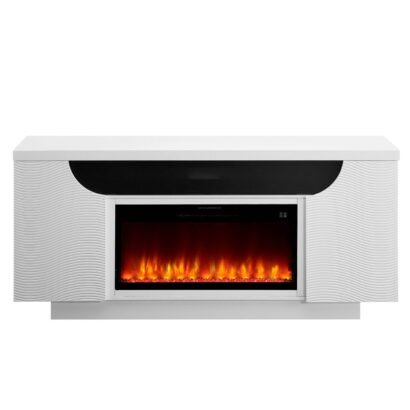 The Aileen 76-Inch Entertainment Unit by Global Furniture offers a perfect blend of style and functionality, making it an excellent addition to any modern living space. Finished in a pristine white lacquer, this sleek fireplace enhances the room with its sophisticated design. It features built-in LED lights that provide a customizable ambiance, while integrated speakers deliver clear, high-quality sound for an immersive experience. The captivating crystal insert adds a touch of elegance, creating a visually stunning focal point. For added convenience, the pop-up center doors reveal practical storage space to keep your electronics or accessories organized. With its chic design and versatile features, the Aileen Fireplace brings warmth and style to any room in your home.