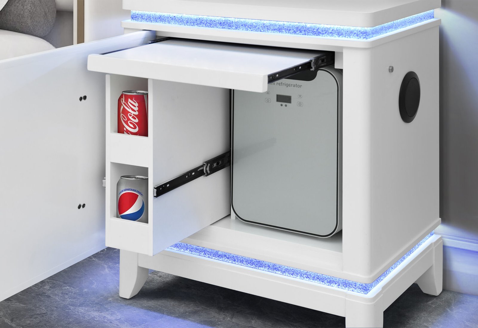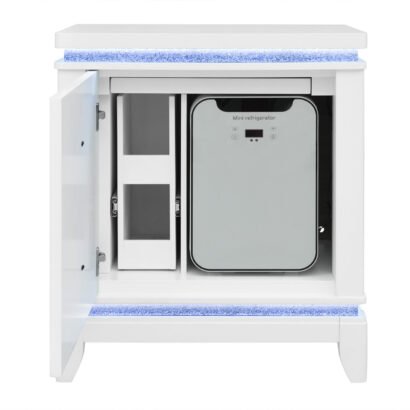 ALINA WHITE NIGHTSTAND WITH COOLER, LED, SPEAKER AND USB
