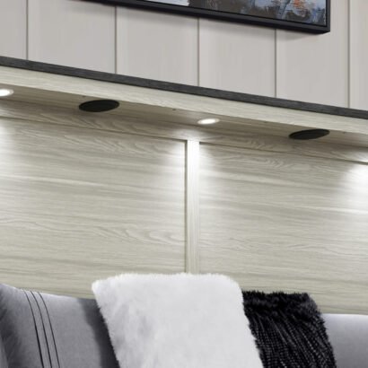 Modern design meets smart technology in the Ashley Brown Bedroom Set by Global Furniture USA. This beautifully crafted set combines rich, cool wood tones with cutting-edge features to bring both style and convenience to your space. The centerpiece is a contemporary bed with an eye-catching headboard that includes three built-in lamp lights, Bluetooth speakers, and USB charging ports—perfect for creating a cozy and connected atmosphere. Whether you’re winding down for the night or getting ready for the day, every piece in the Ashley Brown collection is designed with functionality and elegance in mind. Complete your room with matching storage pieces that offer sleek lines, durable construction, and modern flair.