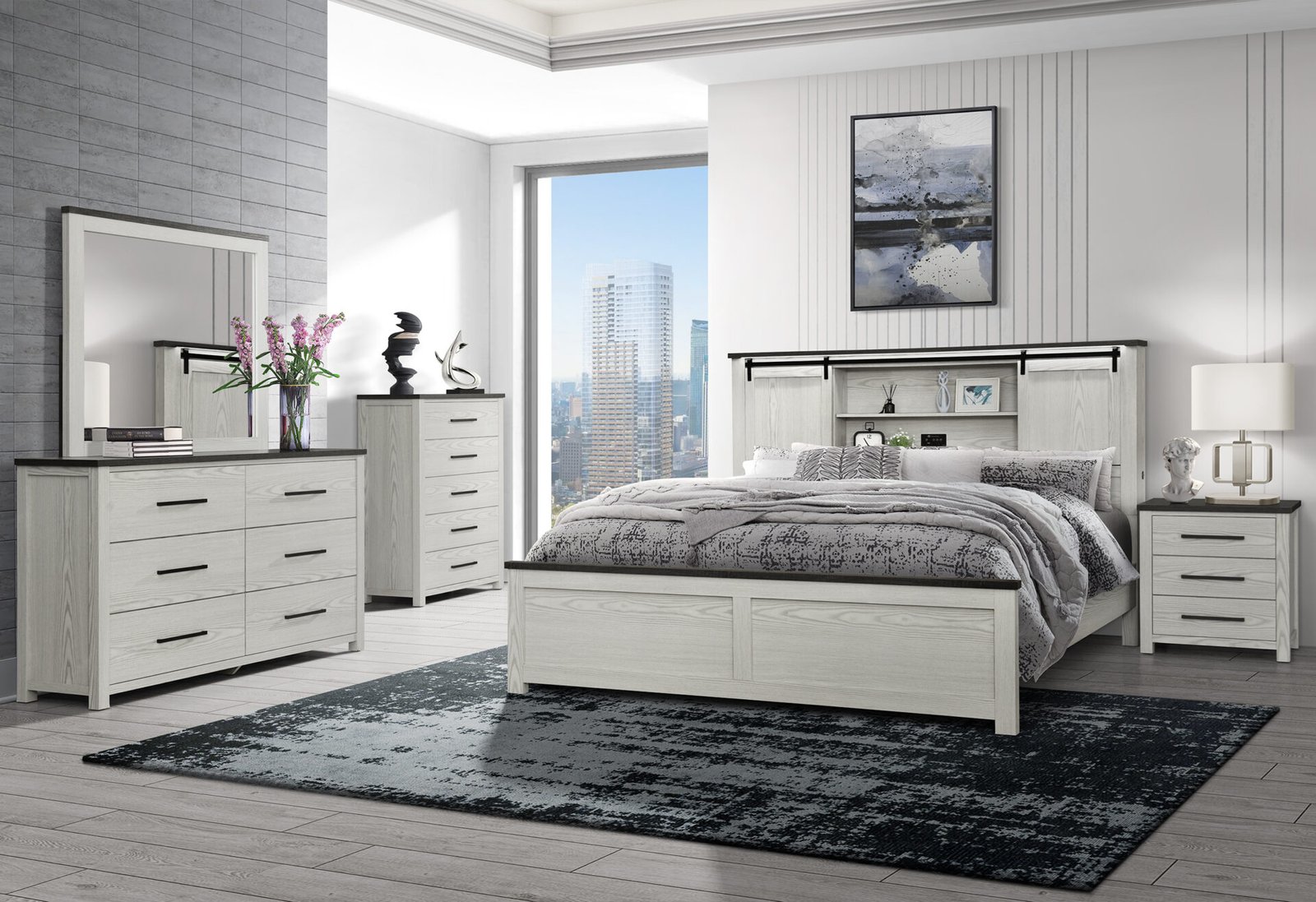 Introducing the Ava Beige Bedroom Collection by Global Furniture, where modern elegance meets functional design. This beautifully crafted collection features a light beige wood finish complemented by sophisticated dark grey accents, creating a serene and inviting atmosphere for your bedroom. The collection is designed to offer both style and practicality, with each piece thoughtfully crafted to provide lasting durability and timeless beauty. From its sleek storage solutions to the high-tech features built into the headboard, the Ava collection effortlessly combines contemporary charm with advanced functionality, making it the perfect addition to any modern home.