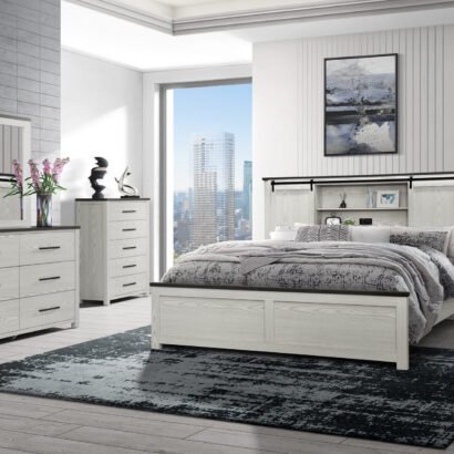 Introducing the Ava Beige Bedroom Collection by Global Furniture, where modern elegance meets functional design. This beautifully crafted collection features a light beige wood finish complemented by sophisticated dark grey accents, creating a serene and inviting atmosphere for your bedroom. The collection is designed to offer both style and practicality, with each piece thoughtfully crafted to provide lasting durability and timeless beauty. From its sleek storage solutions to the high-tech features built into the headboard, the Ava collection effortlessly combines contemporary charm with advanced functionality, making it the perfect addition to any modern home.