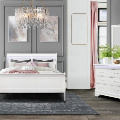 The Charlie Collection is a fresh take on a traditional Louis Philippe. This stylish bedroom features LED accent lighting and acrylic hardware on all case pieces. The Charlie Collection is expertly crafted with premium materials, ensuring durability and longevity. Upgrade your sleeping space with this stylish set and enjoy a luxurious and comfortable sleeping experience.
