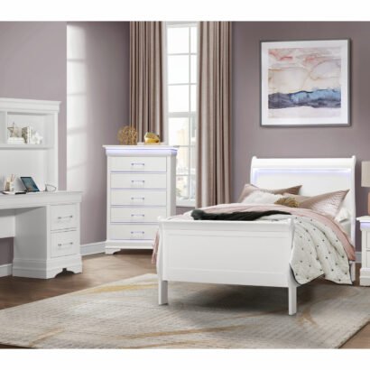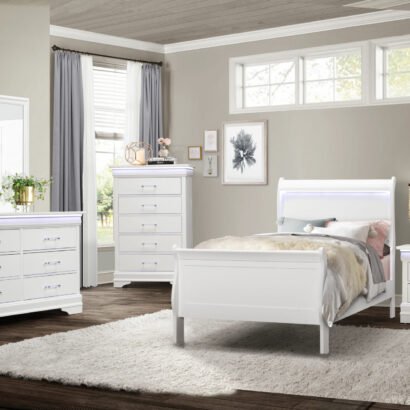 The Charlie Collection is a fresh take on a traditional Louis Philippe. This stylish bedroom features LED accent lighting and acrylic hardware on all case pieces. The Charlie Collection is expertly crafted with premium materials, ensuring durability and longevity. Upgrade your sleeping space with this stylish set and enjoy a luxurious and comfortable sleeping experience.