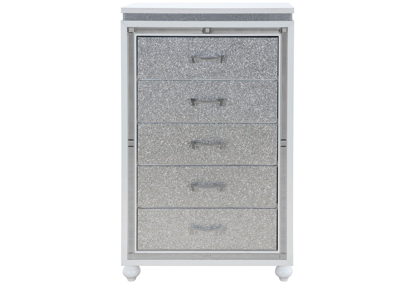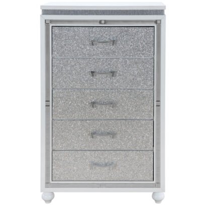 Introducing the Collete Collection by Global Furniture USA, a luxurious bedroom set that exudes modern glamour. Featuring crushed crystal drawer fronts and mirrored accents, this collection creates a dazzling atmosphere. The sleek hardware complements the design, while the LED-lit bed adds a contemporary touch. Elevate your bedroom with the Collete Collection, where style and sophistication meet to form a stunning sanctuary for rest and relaxation.