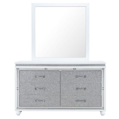 Introducing the Collete Collection by Global Furniture USA, a luxurious bedroom set that exudes modern glamour. Featuring crushed crystal drawer fronts and mirrored accents, this collection creates a dazzling atmosphere. The sleek hardware complements the design, while the LED-lit bed adds a contemporary touch. Elevate your bedroom with the Collete Collection, where style and sophistication meet to form a stunning sanctuary for rest and relaxation.