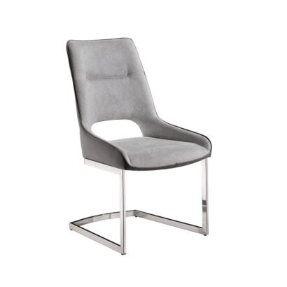 Comfort and style without busting your budget are the hallmarks of this contemporary dining chair. Offered in a light grey with dark grey PU, padded seat and back. This chair is versatile and will make coordinating room decor stress-free and fun. Chair features include sturdy stainless steel legs and feature a cradle seat back, showcasing the modern look of this set. Quality craftsmanship in every facet ensures durability and long lasting wear. Looking to update your dining or entertainment area and bring a fresh perspective to your home? This chair offers the flexibility and smart form and function to meet all your furnishing needs.
