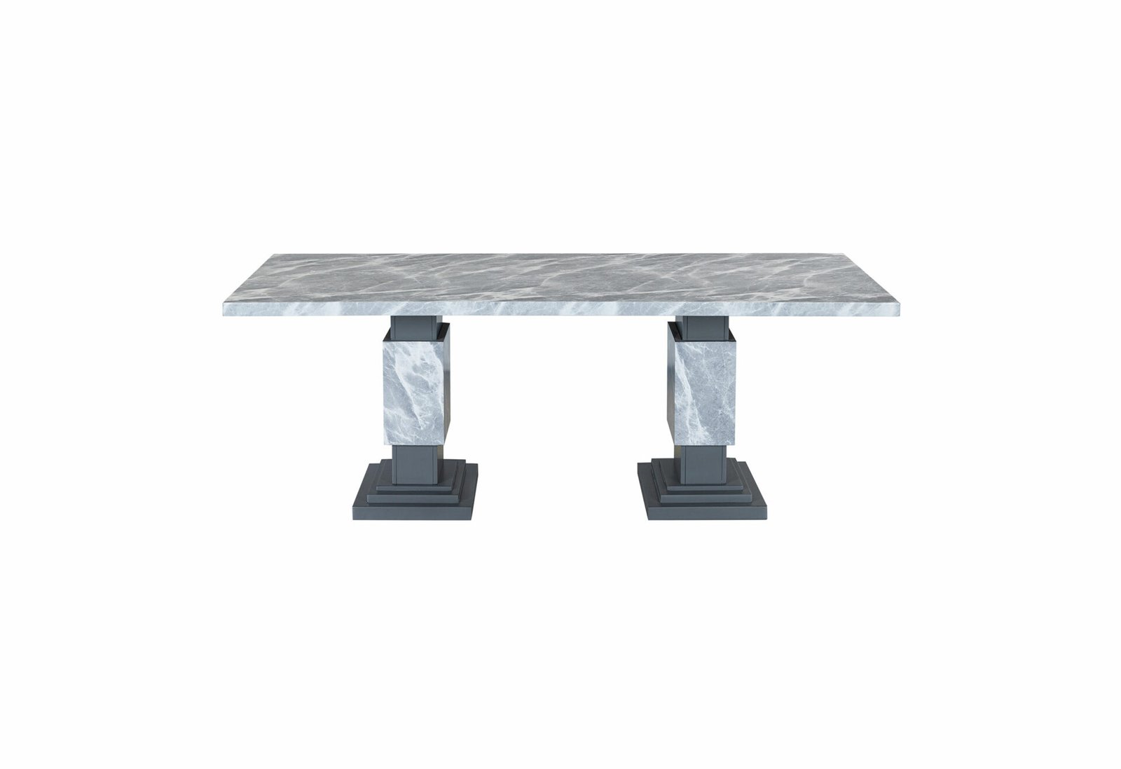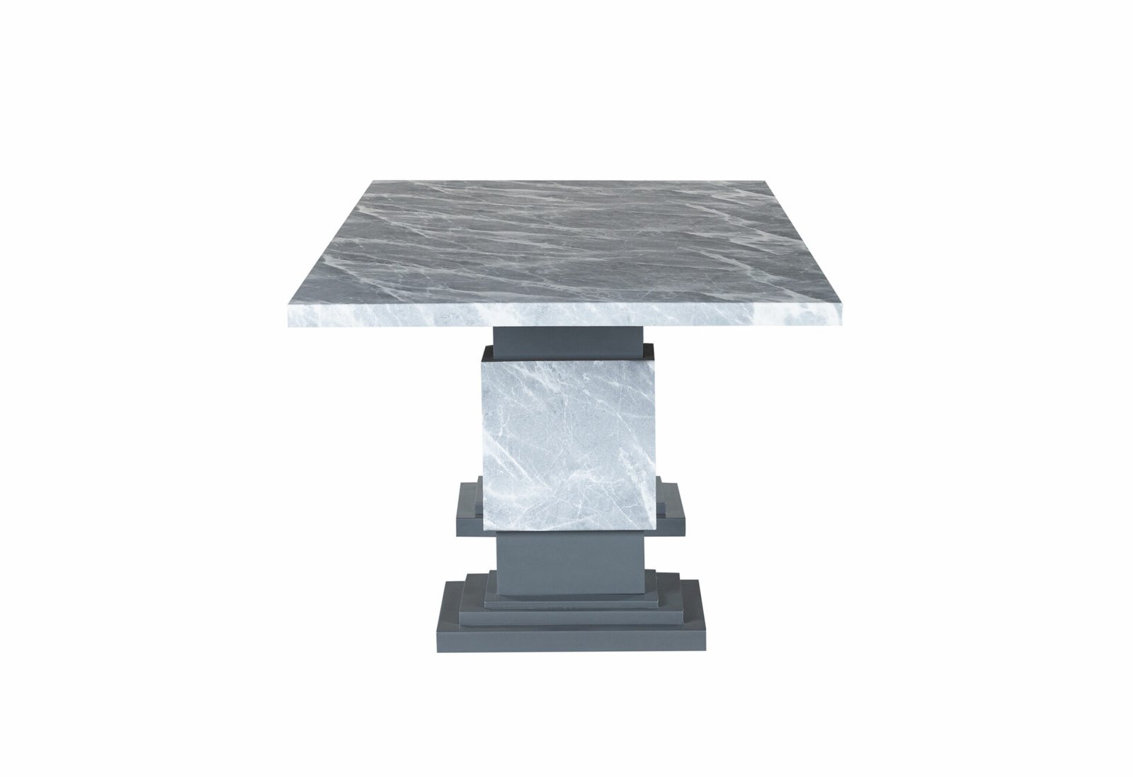The focal point of this set is the table, featuring a faux marble top that exudes timeless luxury. Its sleek grey base with faux marble accents adds a touch of modernity and complements any interior decor effortlessly. Crafted with meticulous attention to detail, the D1212 table offers a sturdy construction that ensures years of reliable use.