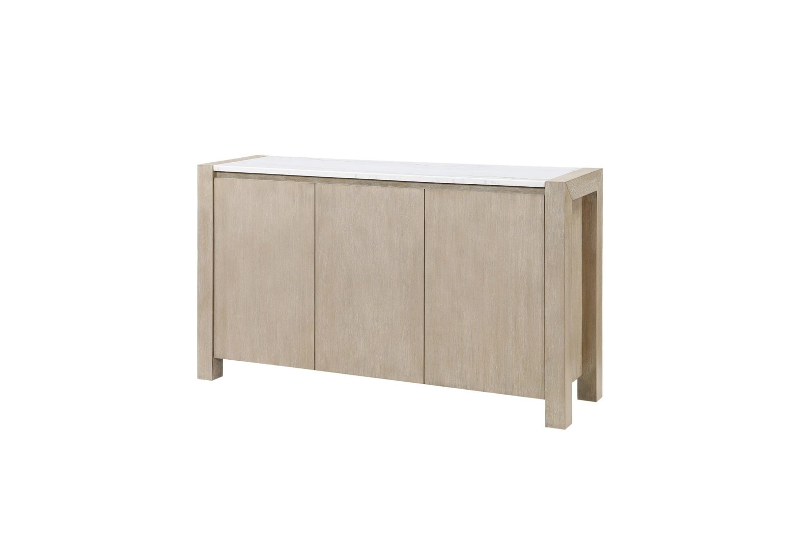 The D1321 Buffet from Global Furniture offers a perfect combination of natural beauty and functional design, making it an ideal addition to any dining room or living space. Finished in a rich natural wood tone, this buffet exudes warmth and sophistication, complemented by a luxurious real marble top that adds an elegant touch to its overall appearance. The buffet features three spacious doors, each opening to reveal a shelf for convenient storage, allowing you to organize and display your items with ease. With its timeless design and versatile storage options, the D1321 Buffet enhances both the style and functionality of your home.