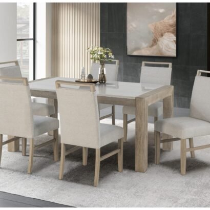 Introducing the D1321 Collection by Global Furniture USA, where modern coastal elegance meets timeless design. This exquisite collection features a stunning dining table crafted with a natural wood finish, beautifully complemented by a luxurious real white marble top. The harmonious blend of materials exudes sophistication and warmth, creating a perfect centerpiece for any dining room.