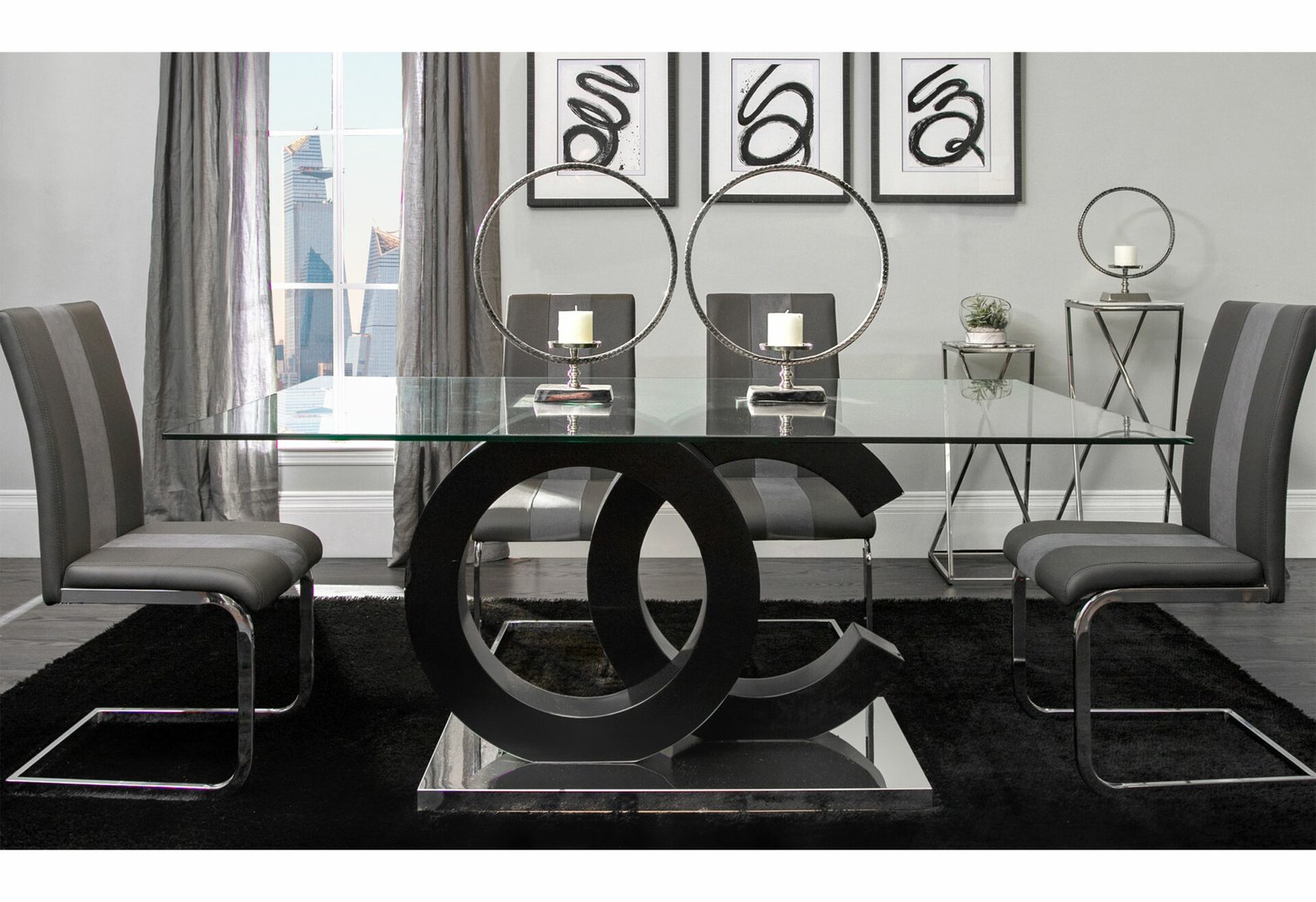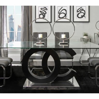 Striking looks and ultra-modern design. This stylish dining table is finished in a desirable styled base giving this table a unique and visually dynamic look. It is a great way to update your dining area and rejuvenate your decor. The arrangement of this table makes it a perfect fit for your dining area while quality construction ensures durability and long-lasting wear.