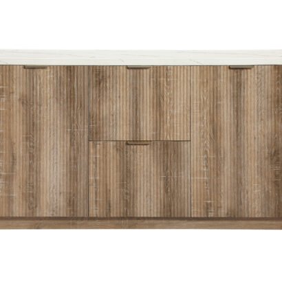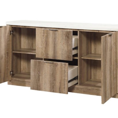 Elevate your dining space with the D2504 Buffet by Global Furniture USA. Featuring a stunning combination of a natural wood base and a sleek faux white marble top, this buffet exudes modern sophistication. The fluted design on the base adds a touch of texture and visual interest, making it a statement piece in any room. Two spacious drawers and two cabinet doors provide ample storage for dinnerware, linens, and serving essentials, helping you keep your dining area organized and stylish. Perfectly balancing beauty and functionality, the D2504 Buffet is the ideal companion to any contemporary dining set.