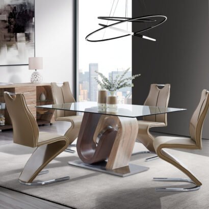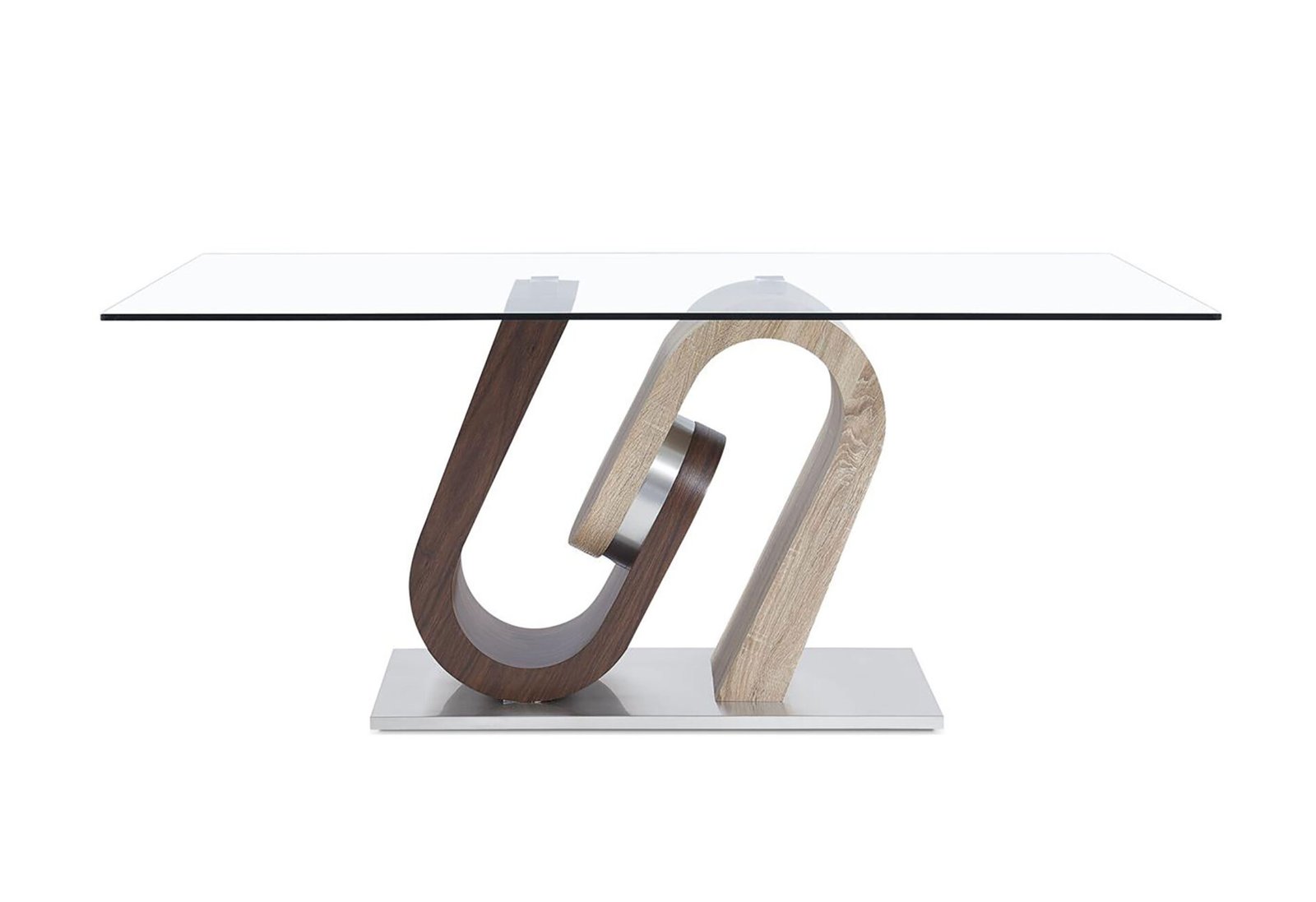 Looking to make an instant style statement then this clear glass top dining table is for you! Design elements include a two toned geometrically designed base fused with a polished chrome accent and a glass top providing enough space for all your entertaining needs.