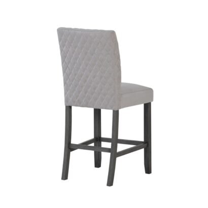 Complete your dining area with the D8192 Bar Stools, where comfort meets contemporary design. These stools feature a distinctive diamond pattern on the backrest, adding a touch of sophistication and visual interest to your space. Upholstered in a sleek grey fabric, they not only complement the bar table but also offer a neutral hue that pairs well with various color schemes. The plush seating ensures that guests are comfortably supported throughout the dining experience, making these stool a perfect match for prolonged gatherings and conversations.