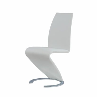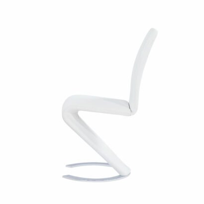 With a Z-Shape design and horse shoe shaped base this dining chair will liven up your contemporary home. This sturdy chair is finished in a white PU material over foam fill for a comfortable and relaxing seating experience. Adding this chair to your dining area will most certainly spruce up your decor.With a Z-Shape design and horse shoe shaped base this dining chair will liven up your contemporary home. This sturdy chair is finished in a white PU material over foam fill for a comfortable and relaxing seating experience. Adding this chair to your dining area will most certainly spruce up your decor.With a Z-Shape design and horse shoe shaped base this dining chair will liven up your contemporary home. This sturdy chair is finished in a white PU material over foam fill for a comfortable and relaxing seating experience. Adding this chair to your dining area will most certainly spruce up your decor.With a Z-Shape design and horse shoe shaped base this dining chair will liven up your contemporary home. This sturdy chair is finished in a white PU material over foam fill for a comfortable and relaxing seating experience. Adding this chair to your dining area will most certainly spruce up your decor.