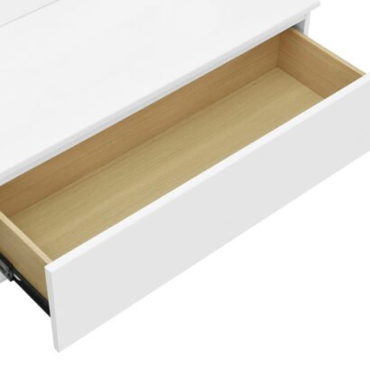The Ella White Narrow Mirror with Drawer by Global Furniture is a sleek and functional addition to any modern bedroom or dressing space. This floor-length LED mirror offers full-body visibility with elegant, built-in lighting to brighten your look and your room. Finished in glossy white lacquer, it features a discreet storage drawer for accessories or daily essentials, and a built-in speaker to enhance your routine with music or audio.