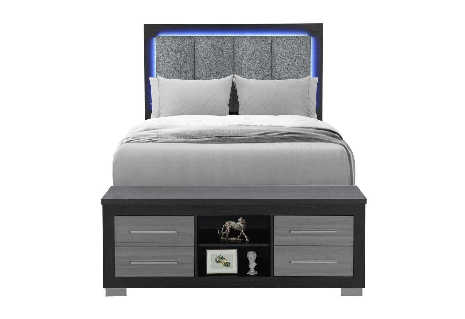 EMMA BLACK/GREY FULL BED WITH LED AND USB