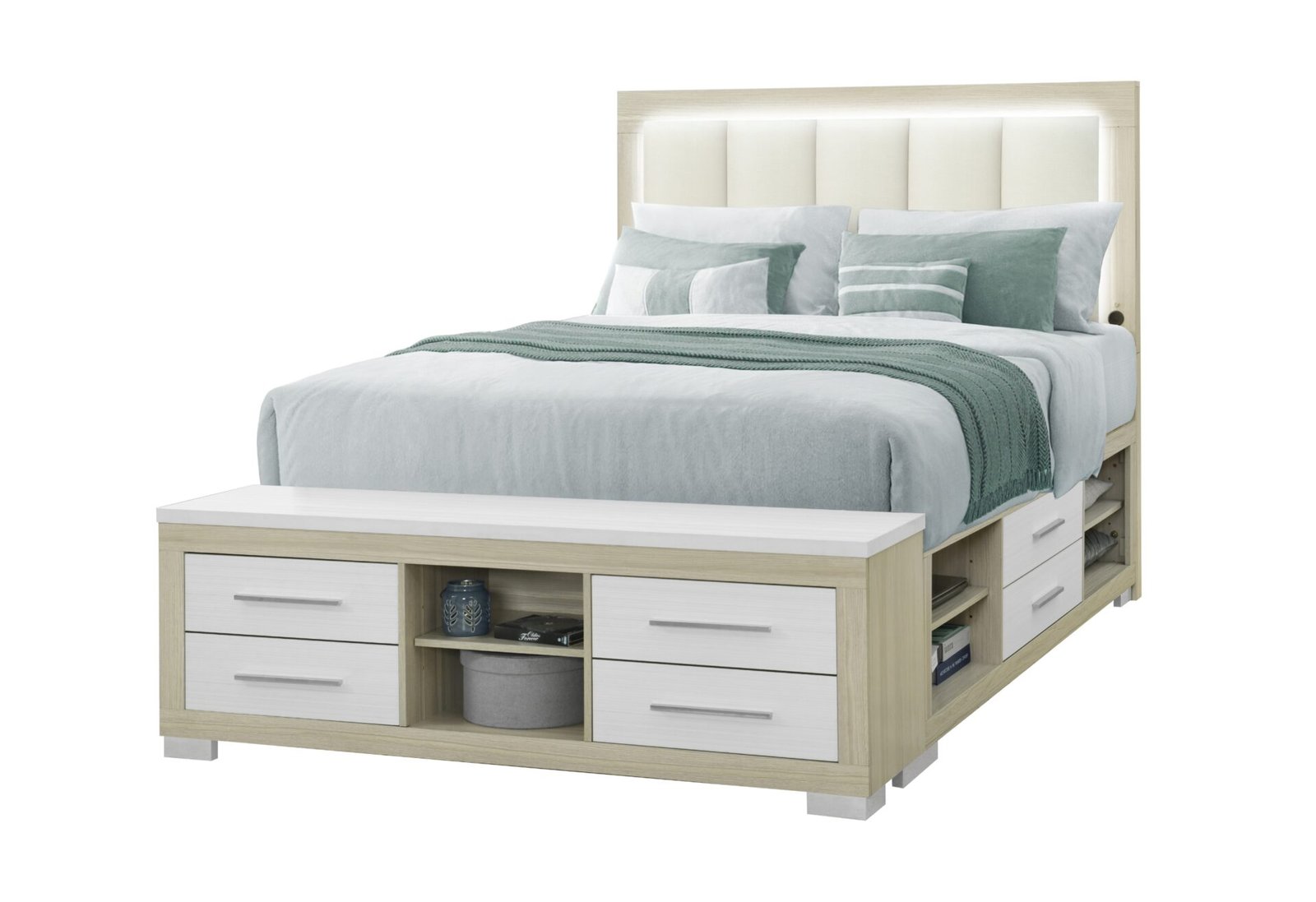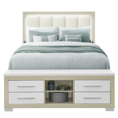 EMMA NATURAL/WHITE QUEEN BED WITH LED AND USB