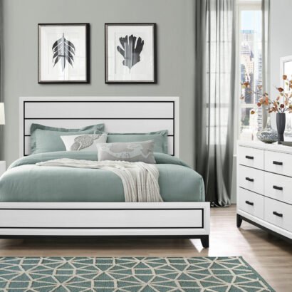 Introducing the Kate Collection from Global Furniture USA, a stunning modern addition to any bedroom. Constructed with solid wood and high-quality materials, all available case pieces are finished with sleek modern hardware completing the set’s polished look.
