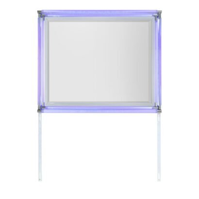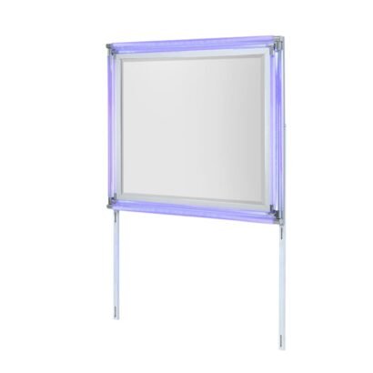 The Lando Mirror adds a touch of modern elegance to your bedroom decor. Framed in sleek grey with acrylic accents, this mirror features integrated LED lighting, enhancing the room’s brightness and depth. It pairs perfectly with the Lando Dresser for a cohesive and stylish look.