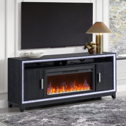The Lily Dark Grey Entertainment Unit by Global Furniture combines modern design with cutting-edge technology to create a statement piece in any room. Measuring 72 inches, this sleek and stylish electric fireplace features a stunning crystal insert that enhances the warm glow of the flames, offering both comfort and elegance. Equipped with vibrant LED lighting and built-in speakers, it sets the perfect ambiance, whether you’re looking to relax with a cozy atmosphere or enjoy a movie night. The dark grey finish adds a touch of sophistication, making it a versatile addition to a wide range of interior styles. With its easy-to-use features and eye-catching design, the Lily Entertainment Unit is an ideal choice for enhancing both the aesthetic and functionality of your living space.