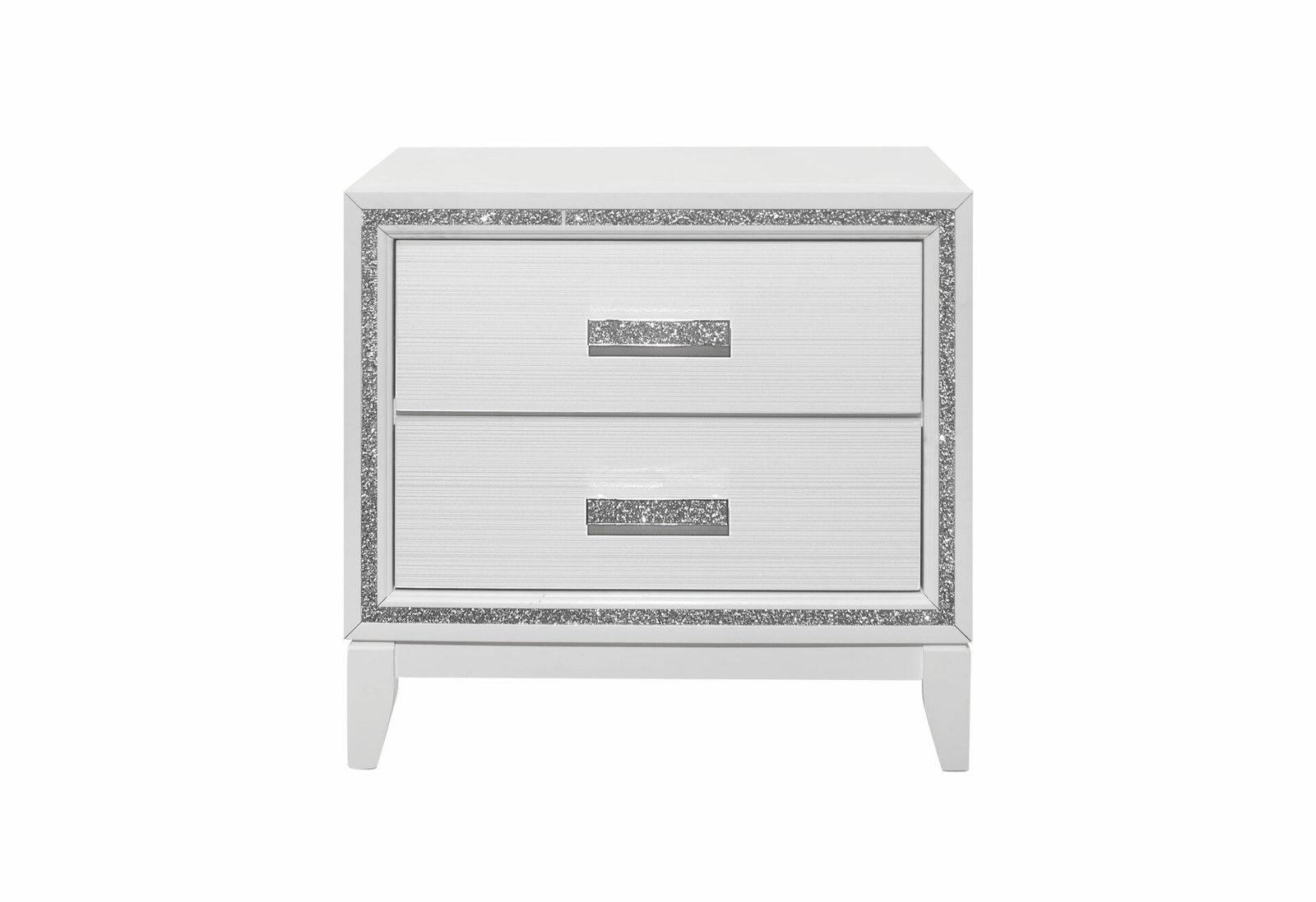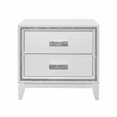 Lily bedroom brings two worlds together. The classic lines and modern accents create a beautiful transitional glam bedroom look. The crushed crystal like look outlines all the pieces along with LED lighting accenting the head board. The crushed crystal like design is not only used as an accent trim but is also carried over to the hardware. The end result is a beautiful glam bedroom.