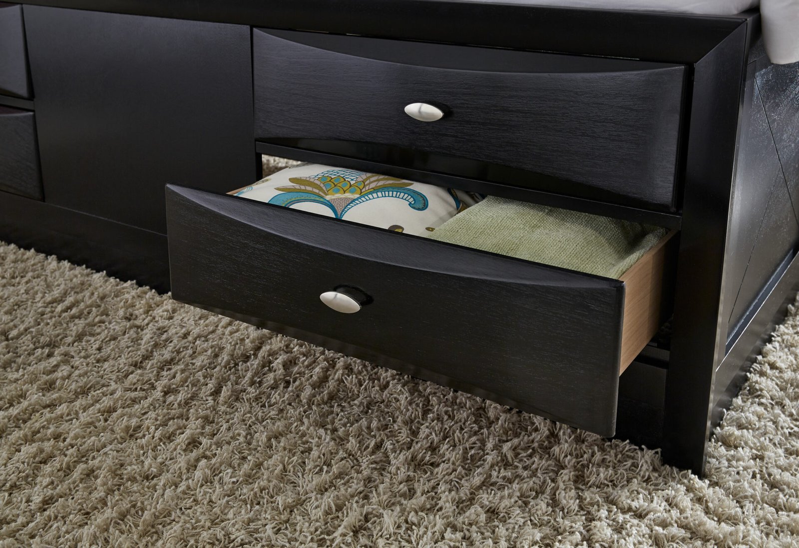 The Linda’s style is the marriage of contemporary lines and classic craftsmanship. Blending ultramodern features, practical additions like extra storage, and chambered door fronts on the storage drawers, each piece offers a balance and beauty that suits your eclectic style.