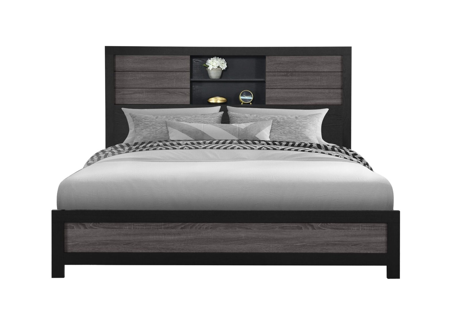 LISBON GREY/BLACK BOOKCASE KING BED