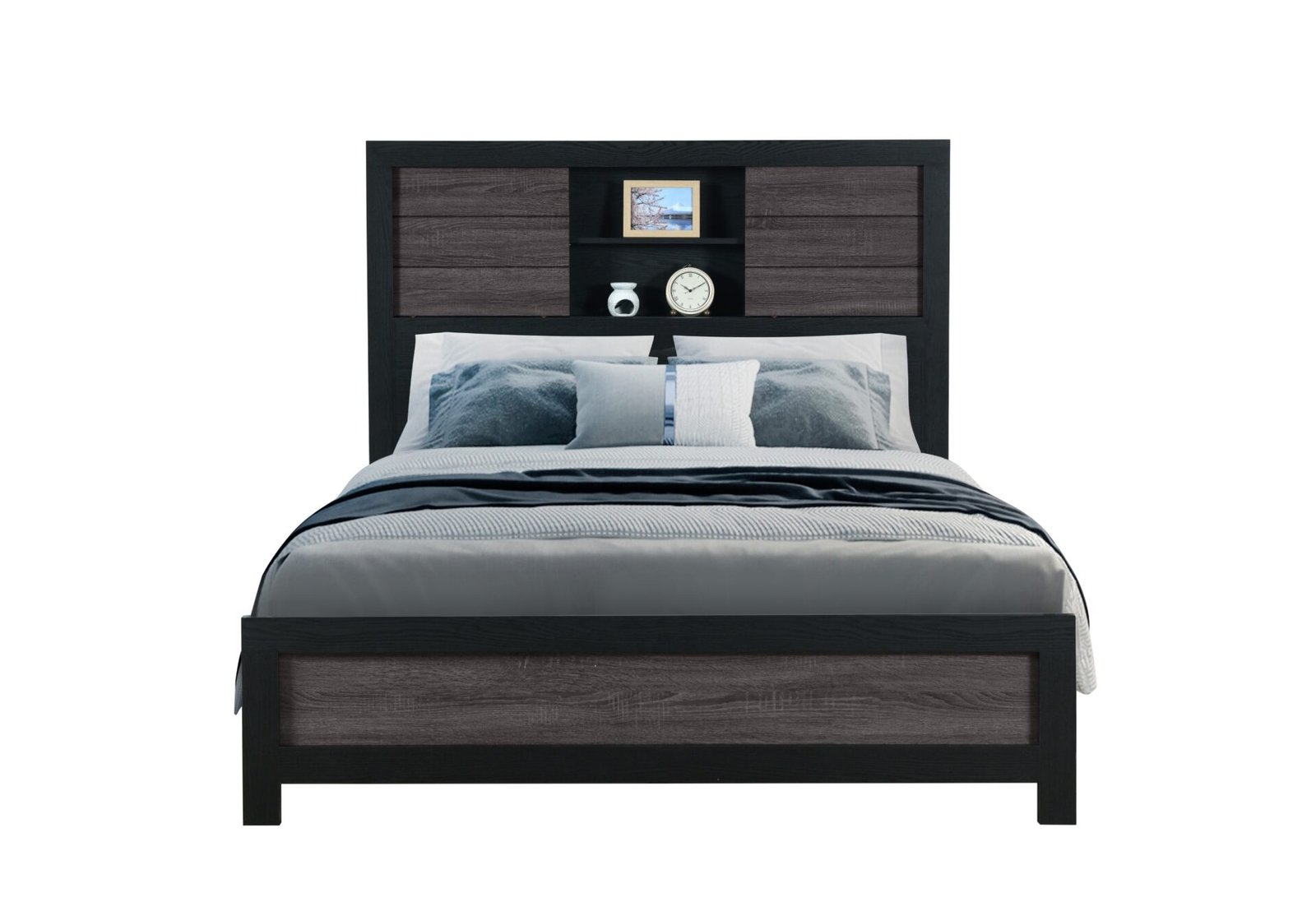 LISBON GREY/BLACK BOOKCASE QUEEN BED
