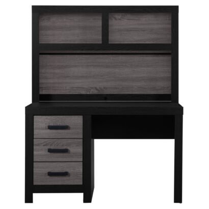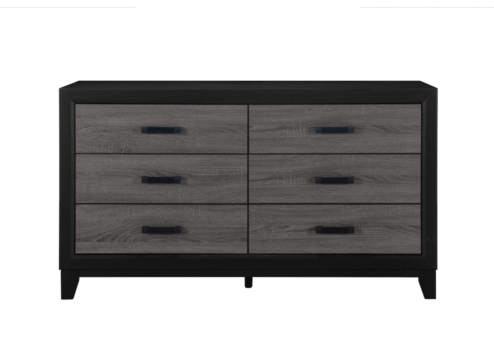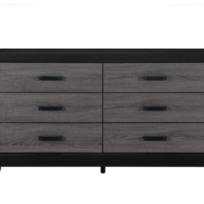With its urban farmhouse design, the best of farmhouse and urban living combine to create an upscaled farmhouse appearance. The case pieces are black with rustic grey wood inlay. In addition to the two-tone design, the metal hardware completes the mixed media look and adds a modern flair.