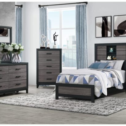 Be the first to review “LISBON GREY/BLACK BOOKCASE TWIN BED, DRESSER, MIRROR AND NIGHTSTAND”