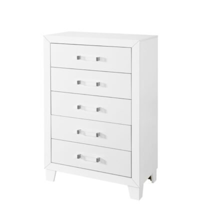 The Luccia 5-Drawer Chest is the epitome of form meeting function in bedroom design. Standing tall with a sleek white finish, this chest is a testament to Global Furniture USA’s commitment to elegance and quality. Five drawers offer ample storage, making it an ideal choice for rooms where space is at a premium. The chest is accented with chic acrylic hardware which not only highlights the beauty of the piece but also offers a serene atmosphere. With its clean lines and refined presence, the Luccia 5-Drawer Chest is a perfect addition to any contemporary bedroom setting.