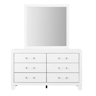 Experience luxurious serenity and contemporary elegance with the Luccia Bedroom Collection by Global Furniture USA. This exquisite ensemble transforms any bedroom into a modern sanctuary, featuring a sleek white finish that exudes sophistication. Each piece in the collection is adorned with modern acrylic hardware, adding a touch of glamour to the minimalist design. LED accent lighting on the headboard creates a soothing ambiance, the upholstered headboard provides a plush backdrop for relaxation and sleep. Crafted with exceptional attention to detail, the Luccia Collection promises to infuse your space with chic style and unparalleled comfort.