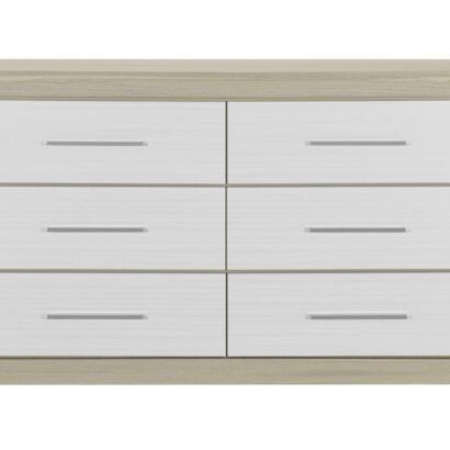 Transform your bedroom into a modern retreat with the Madison Natural and White Bedroom Collection by Global Furniture. This collection combines sleek design with unparalleled functionality, featuring a striking two-tone natural wood and white finish. The centerpiece of the collection, the Madison Queen Bed, boasts luxurious white upholstery on the headboard, complete with a built-in LED light and USB charging port for added convenience. Integrated speakers provide an enhanced audio experience, while cleverly designed storage cubbies on either side of the headboard, add a touch of charm and practicality. His & her safe on each side of headboards adds security to this already functional piece. Paired with the Emma series case goods, including the dresser, mirror, chest, and nightstand, this collection seamlessly blends modern aesthetics with ample storage solutions, making it the perfect choice for those who value both style and utility.