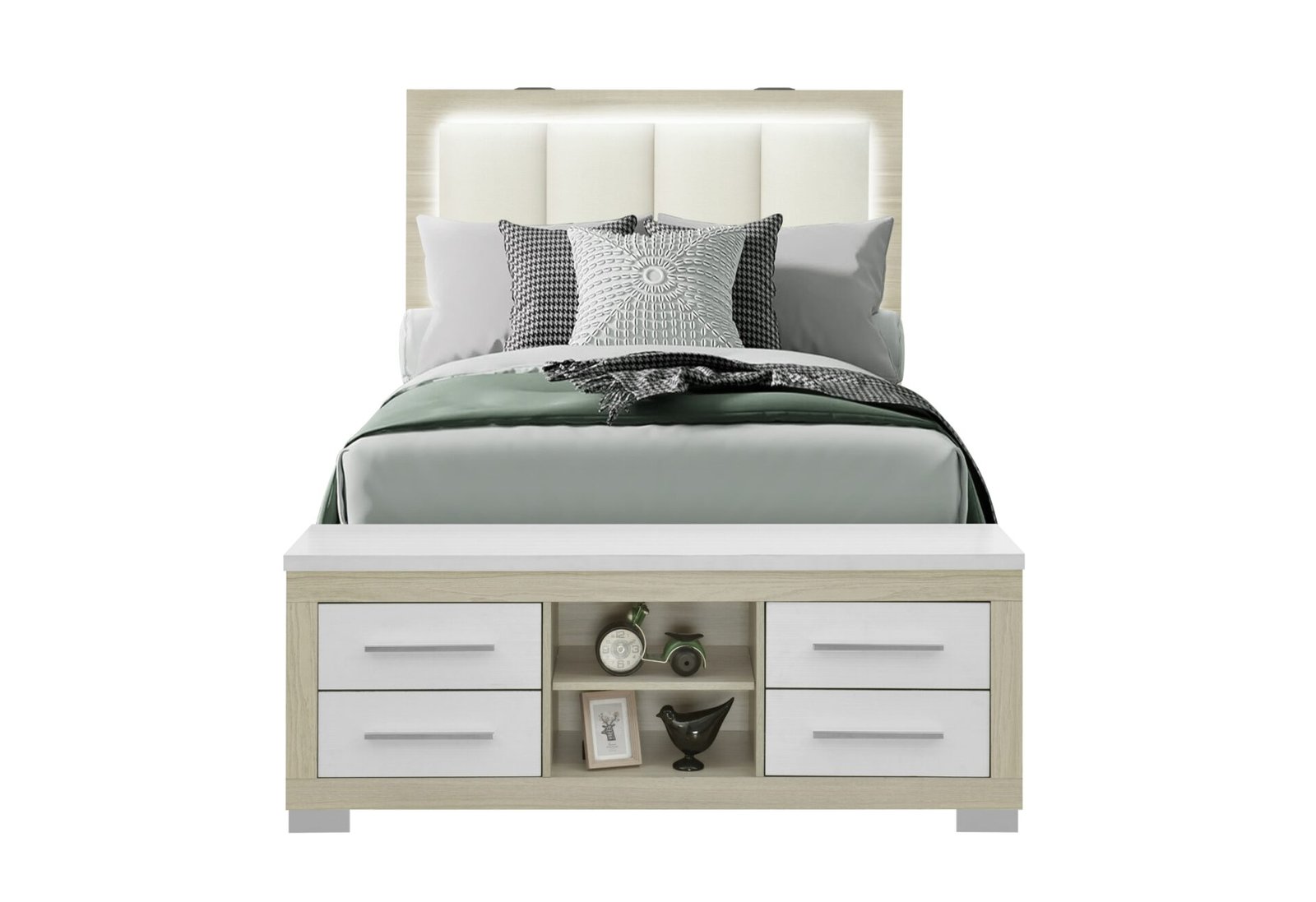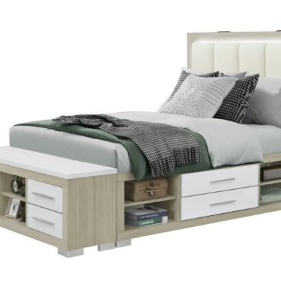 Elevate your bedroom with the Madison Queen Bed, where contemporary design meets ultimate functionality. The headboard features grey upholstery, an integrated LED light, and a USB charging port to keep your devices powered. Two built-in speakers deliver quality sound, creating a relaxing ambiance. Ingenious storage cubbies on each side of the headboard, provide space for books, devices, or decor. His & her safe on each side of headboards adds security to this already functional piece. Designed for practicality, the bed offers all-around storage, ensuring you have ample room for all your bedroom essentials. The sleek black and grey finish adds a sophisticated touch to this versatile centerpiece.