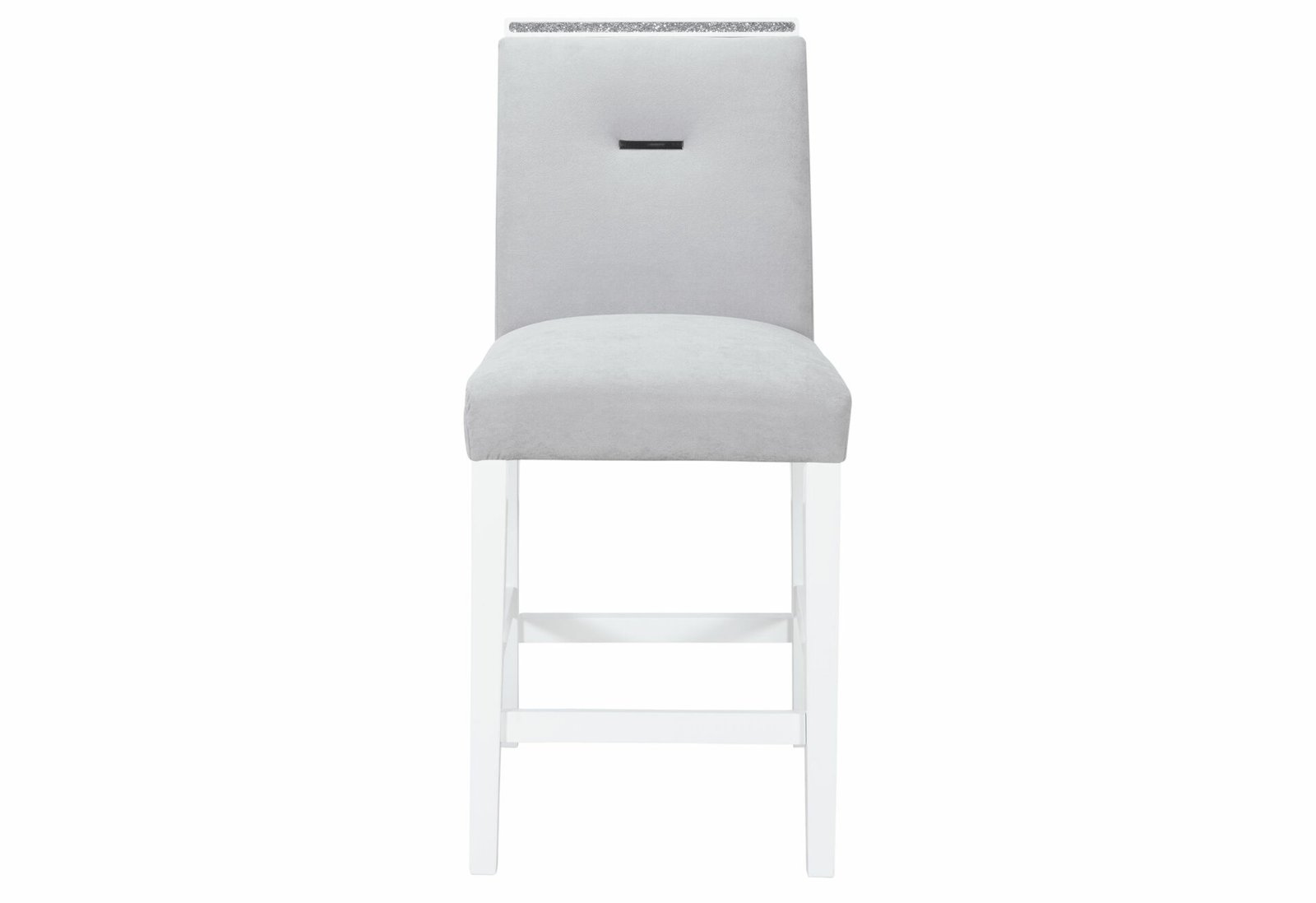 Comfortable seating without compromising your budget are the showcase features of this modern bar stool. Shown here in a light grey velvet fabric, this chair has nicely padded seat and slat design back-seat cushions, along with sturdy sleek styled legs. This barstool would look great in a kitchen or breakfast nook and is an easy way to update your eating area. Quality craftsmanship in every facet ensures durability and long-lasting wear. Comfort and attractive design make this chair a great choice in home seating and is sure to provide inviting relaxation for family and friends to enjoy.