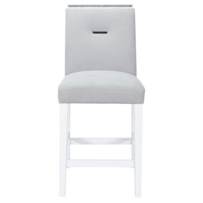 This bar table is a showcase example of how charm and a touch of elegance can dramatically change the look of your eating area. This table includes glitter detailing style elements with a sturdy construction and a high gloss finish with a clear glass inlay to round off the look. Constructed of MDF, Glass and Acrylic this dining table makes a bold statement. Finished in a White and Silver with a center glass, square shape and pedestal base you will have more than enough room to entertain and enjoy your dining experience.